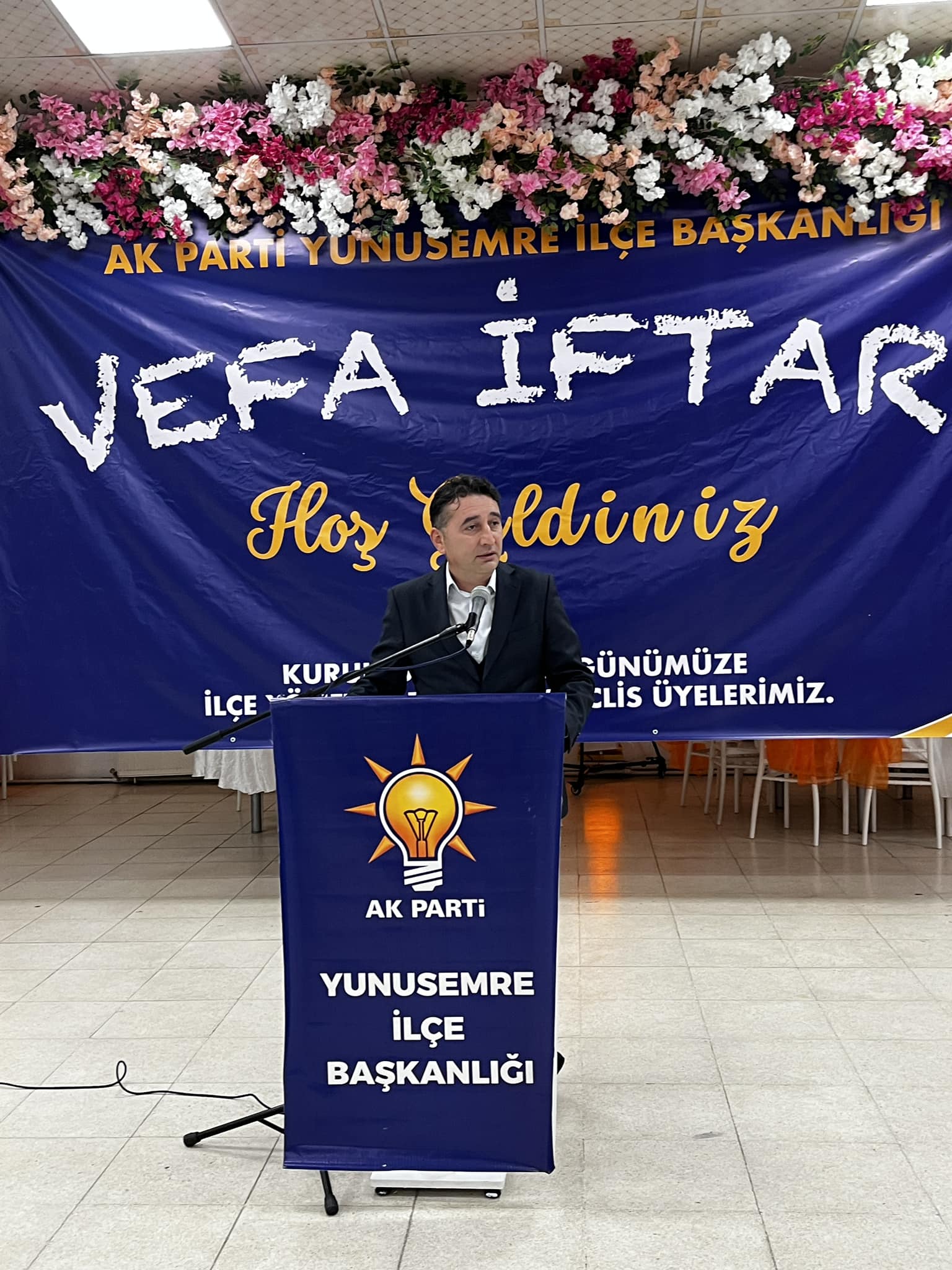 Haber : Nurgül YılmazAk Parti Yunusemre İçe Başkanlığı’nın düzenlediği iftara; AK Parti MKYK Üyesi Manisa Milletvekili ve 28. dönem milletvekili adayı Murat Baybatur, Yunusemre Belediye Başkanı Dr. Mehmet Çerçi, 28. dönem milletvekili adayı Fatih Katıöz, Yunusemre İlçe Başkanı İlkcan Durmaz, Yunusemre ilçe başkanlığı yönetimi, meclis üyeleri, önceki dönem İlçe Başkanları Zafer Ekinci ve Engin Yüksel, İlçe Kadın Kolları Başkanı Ebru kalfa Kaplan, Gençlik kolları Başkanı Eyüp Oyit, uzun yıllar partiye emek vermiş yöneticiler, teşkilat mensupları ve partililer katıldı. GEÇMİŞTEN GÜNÜMÜZE AK PARTİ'YE HİZMET EDEN HERKESE TEŞEKKÜR ETTİAk Parti Yunusemre İlçe Başkanı İlkcan Durmaz İftardan sonra kürsüde; geçmişten günümüze Ak Partiye hizmet eden herkese teşekkür ederek başladığı konuşmasında, “bugün iftarımızı AK Parti Yunusemre İlçe Teşkilatımıza kurulduğu günden bu yana hizmet eden kıymetli başkanlarımız ve yöneticilerimiz ile birlikte yaptık. Kıymetli Ak Parti ailem, dostluklarımızın güçlendiği bu mübarek ayda ilçe teşkilatımızın düzenlediği iftar programına katılım sağlayan herkese teşekkür ediyorum. Ramazan birlik, bereket, rahmet ve kardeşlik ayıdır. Kardeşlik, birlik ve beraberlik sofrasında önceki dönemde davamıza hizmet etmiş tüm teşkilat üyelerimizle bir araya gelmekten mutluluk duyuyorum. Geçmişten günümüze Ak partiye hizmet eden herkese teşekkür ediyorum. Ramazan ayının sonuna yaklaşırken tuttuğumuz oruçların kabul olmasını yüce Allah’tan niyaz ediyorum.” Dedi.