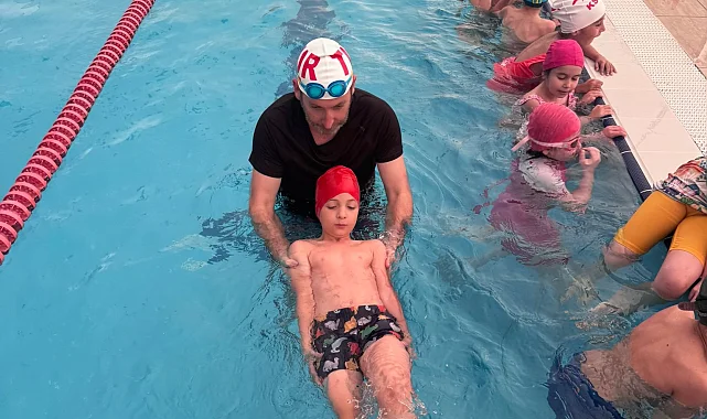 Kocaeli'de İzmit Belediyesinin ücretsiz yüzme eğitimleri kapsamında 30 Ağustos İlköğretim Okulu öğrencileri havuzda ilk derslerine katılarak suyla güvenli ve eğlenceli bir başlangıç yaptı