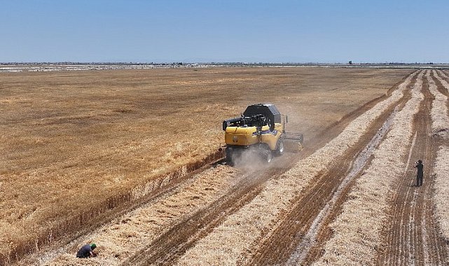 Konya Büyükşehir Belediyesi ve Karatay Belediyesi tarafından üretime kazandırılan Saraçoğlu Mahallesi’ndeki 14 milyon metrekarelik Tarımsal Üretim ve Ar-Ge Kampüsü’nde susuz tarım modeliyle ekilen buğdayın hasadı yapıldı.